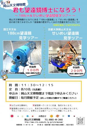 - 2025年11月27日更新君も望遠鏡博士になろう! ~せいめい望遠鏡見学ツアー~【12月6日】